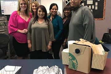 The great staff of Castle Rock Elementary in Woodlake won the MY975FM Coffee Break Breakfast .It's Powered By Service Master By Benevento
